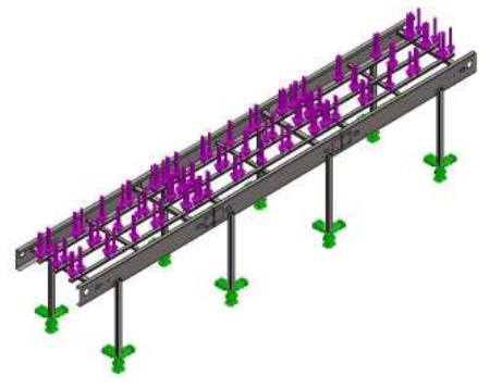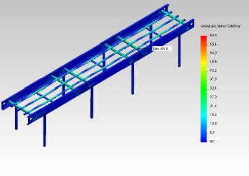 O software utilizado para a modelação da transportadora foi o Solidworks onde foram realizados também as simulações de cargas aplicadas para um correcto dimensionamento da estrutura.
