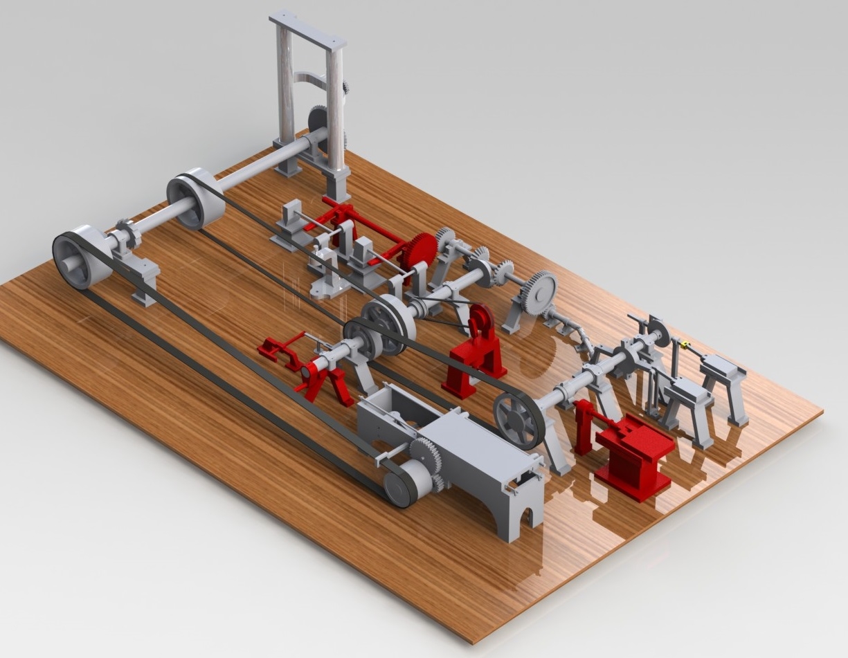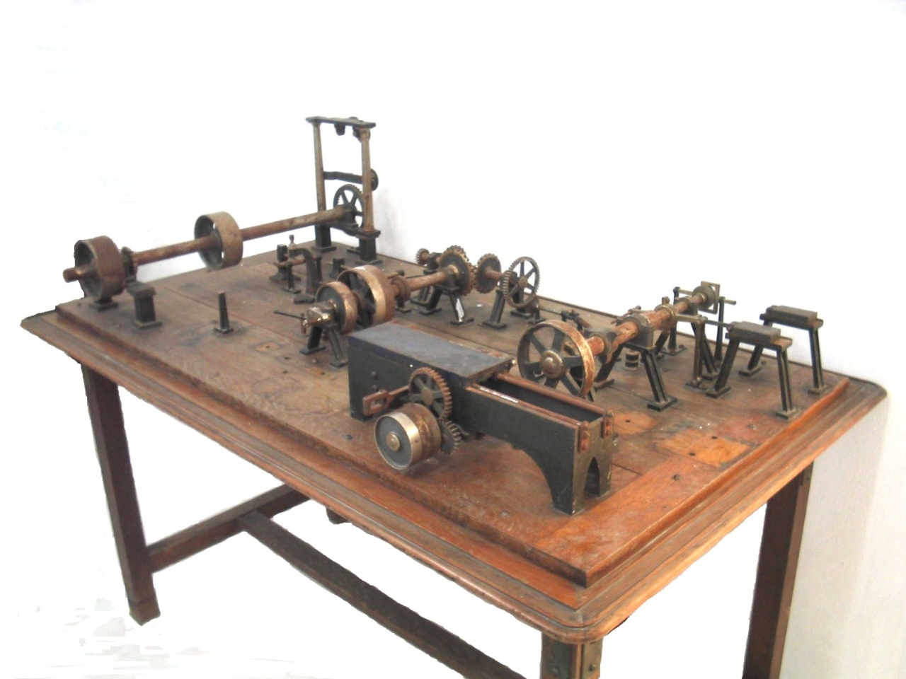 O modelo final está representado na figura anterior, na seguinte podemos ver o modelo real, no qual faltam alguns mecanismos que se perderam com o passar do tempo (a vermelho estão os constituintes em falta).