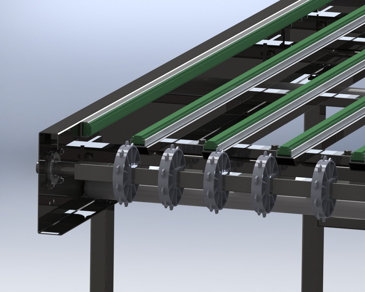 O software utilizado para a modelação da transportadora foi o Solidworks onde foram realizados também as simulações de cargas aplicadas para um correcto dimensionamento da estrutura.